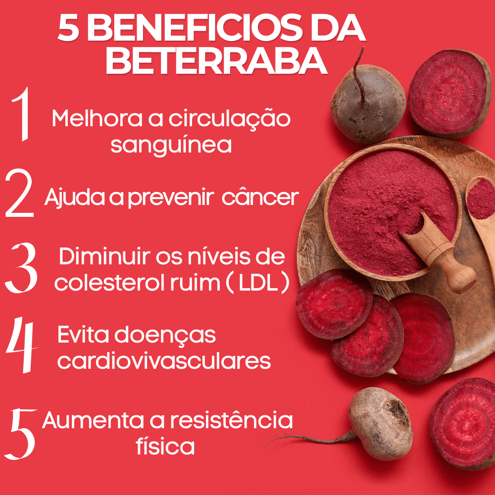 A farinha de beterraba da Bem Vita é feita com bebidas frescas, desidratadas e moídas com cuidado, sem adição de açúcares, corantes ou aditivos. Uma fonte natural de nitratos, antioxidantes e sabor levemente adocicado.