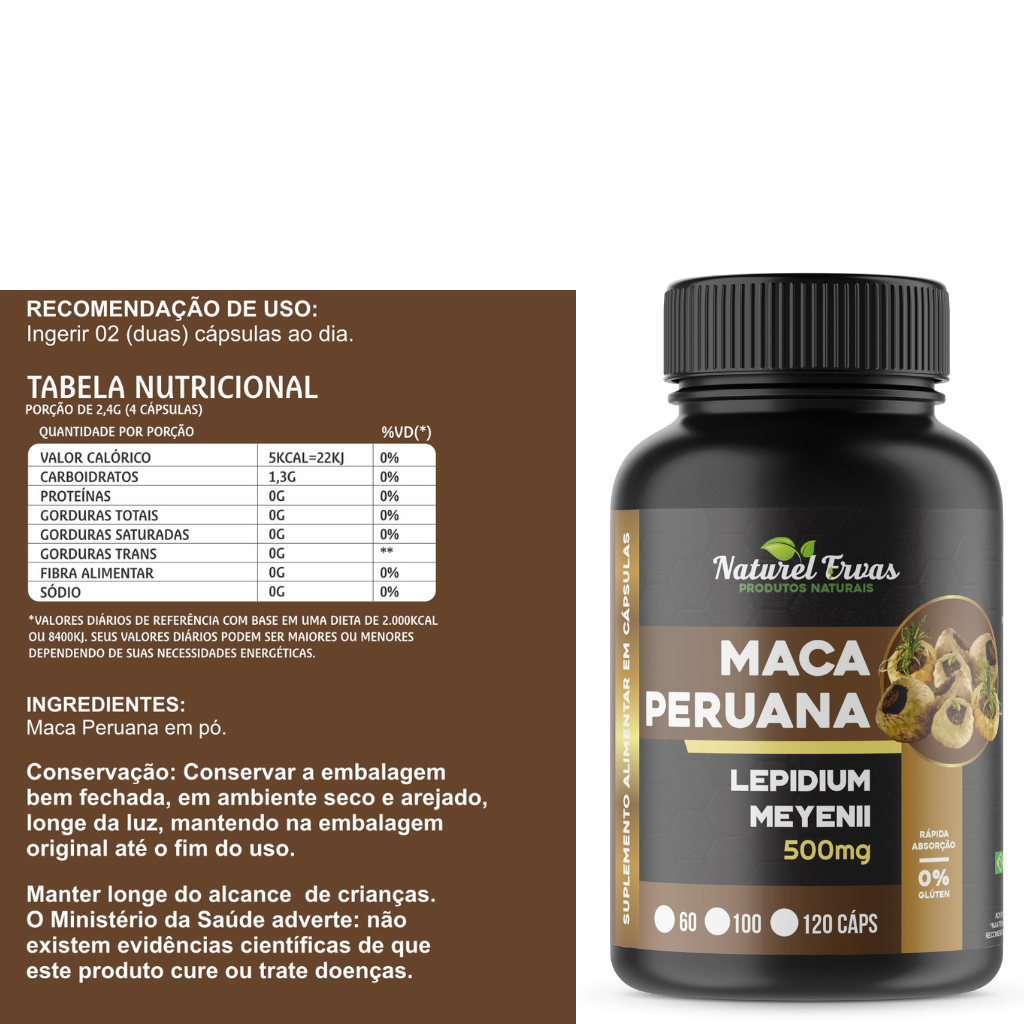 Composição: Maca peruana em pó (Lepidium meyenii)